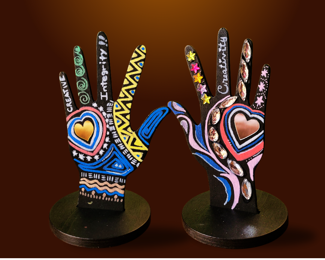 Paint your own wooden hand with colors and cultural symbols that represent inner-peace, self-reflection and community connection.